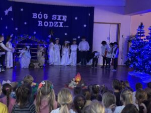 W czwartek 19 grudnia w przedszkolu odbyły się Jasełka Bożonarodzeniowe przygotowane przez przedszkolaków z grupy 12. Dzieci w przejmujący sposób opowiedziały historię Bożego Narodzenia. Celem wystąpienia było wprowadzenie wszystkich w świąteczną atmosferę, pełną radości i spokoju. Nie zabrakło również pięknych kolęd, pastorałek i tańca aniołków. Na koniec Pani dyrektor złożyła wszystkim spokojnych, radosnych świąt Bożego Narodzenia spędzonych w gronie rodziny.
