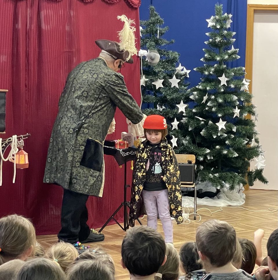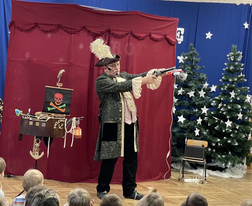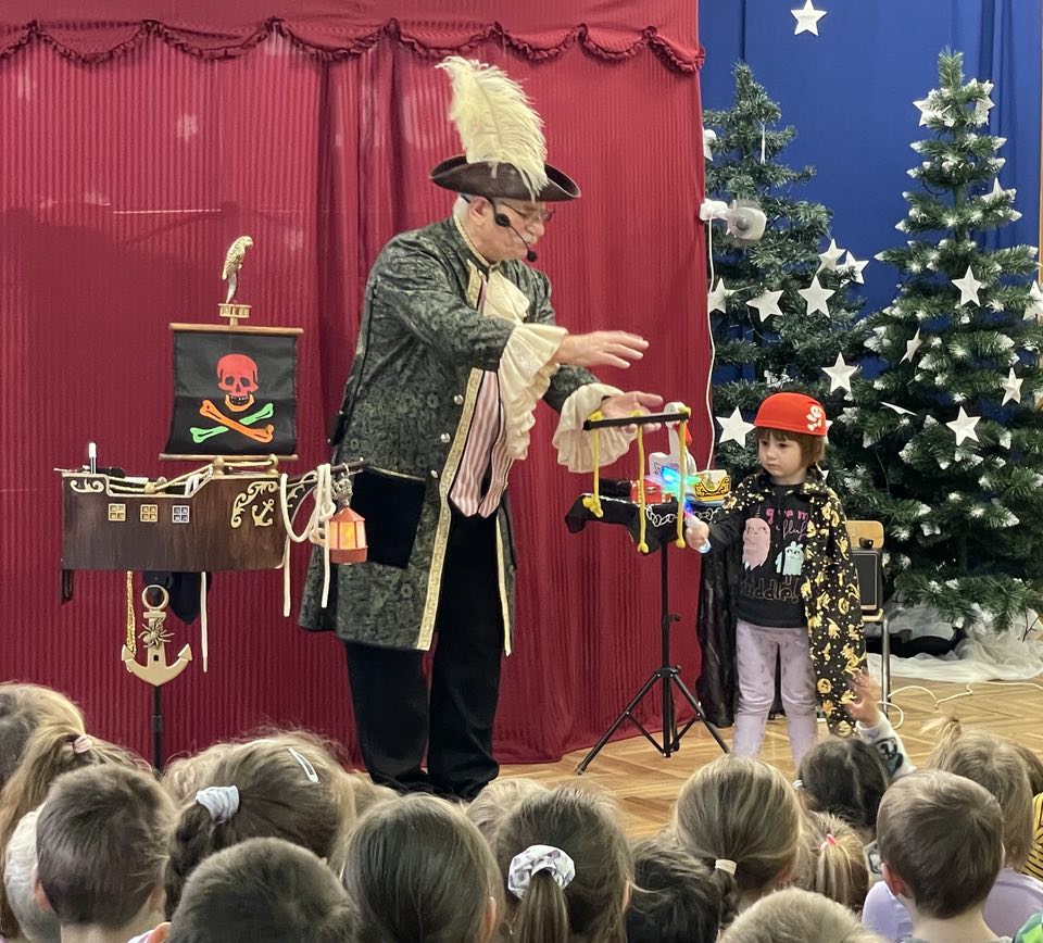 Dnia 16.01.2025r na terenie przedszkola odbyło się przedstawienie teatralne pt. Pirat czarodziej z magią na wesoło. Dzieci podczas przedstawienia mogły przenieść się w świat magii i iluzji a także nauczyć się czarować.